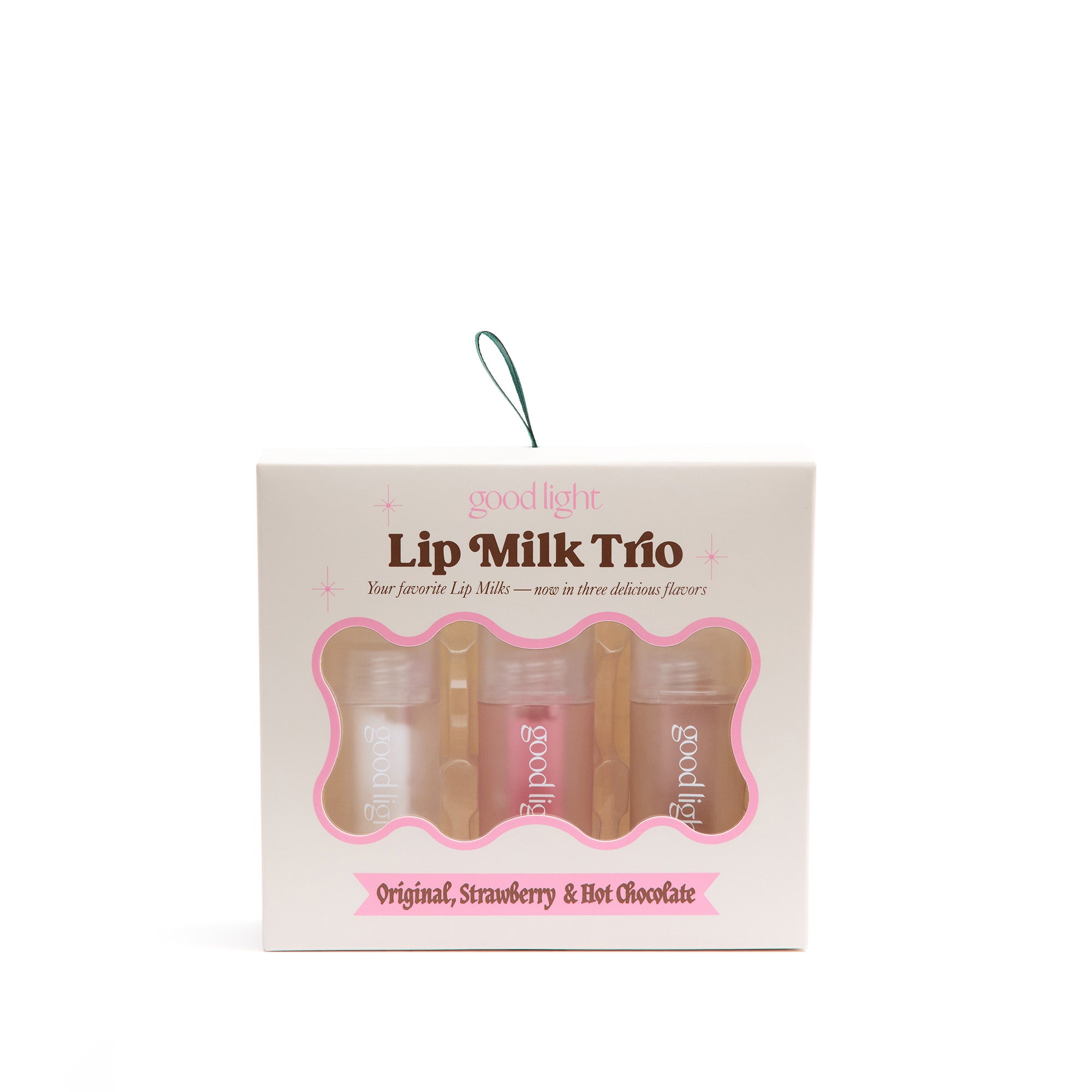 Features our original Lip Milk (a sweet raspberry flavor), with two brand new additions: Hot Chocolate and Strawberry. The lightweight formula glides on smooth and drenches lips with instant hydration, keeping them soft and delicious all season long.